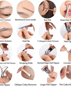 - Comfortabele ervaring: de set is ergonomisch gevormd en voelt zeer comfortabel aan. Scherpe nagelknippers kunnen gemakkelijk nagels trimmen en voorkomen dat nagels barsten. Andere producten voldoen ook volledig aan de behoeften van acne en keratine verwijderen, wenkbrauwtrimmen en andere verzorgingsbehoeften, waardoor u een ontspannen en aangename ervaring krijgt.