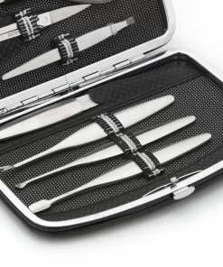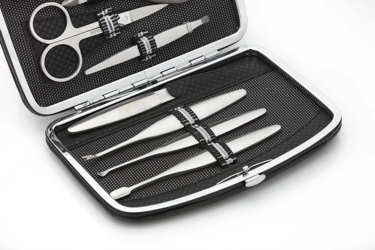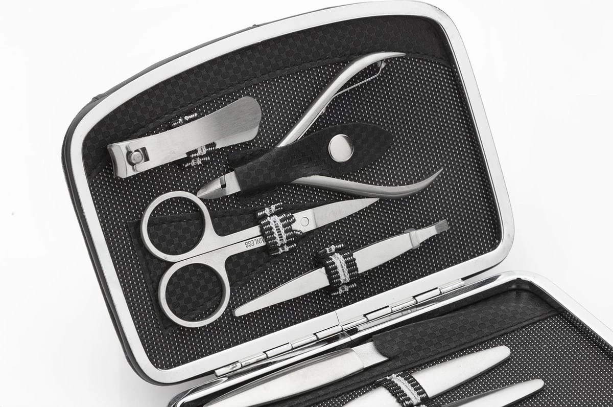 Ben je op zoek naar een handige nagelverzorging set of manicure setje voor jezelf of als cadeau? Zoek dan niet verder Zeer geschikt om mee op reis te nemen of in je tas te stoppen. Nooit meer last van te lange of smerige nagels. Het setje is verpakt in een makkelijk zwart meeneem doosje met een afmeting van 12 x 16 x 2cm.