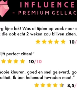 Influence – Premium Gellac is een gellak die uitgehard moet worden onder een LED- of UV-lamp. De gellac kun je gebruiken op je natuurlijke nagel, maar is ook prima te gebruiken op kunstnagels. Deze unieke lak blijft wel twee weken zitten en zorgt dus voor twee weken mooie, goed verzorgde nagels.