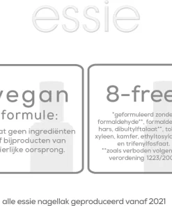 Wil je even een break van je uitgebreide manicure routine, maar wil je wel mooie verzorgde nagels met een kleurtje? Gebruik de essie 3 sheers to you nagellak. 3 sheers to you is een prachtige roze nagellak met een glanzende finish en is semi-dekkend. De verzorgende nagellak is verrijkt met calcium en camellia-extract waardoor het ideaal is voor zwakke en brosse nagels. Het gemakkelijk 1-stap systeem van essie TREAT LOVE & COLOR™ maakt een manicure sneller en gemakkelijker dan ooit door verzorging en kleur te combineren. Hierdoor is ook geen base coat of top coat nodig. De roze nagellak is verrijkt met verzorgend calcium en camellia-extract. essie goes vegan & 8-free! Vanaf 2021 heeft essie een volledige vegan formule, waar geen ingredienten of bijproducten van dierlijke oorspronk zijn gebruikt. Daarnaast zijn de lakjes ook 8-free, dit betekend dat ze geformuleerd zijn zonder formaldehyde*, formaldehydehars, dibultylftalaat*, tolueen, xyleen, kamfer, ethyltosylamide* en trifenylfosfaat.