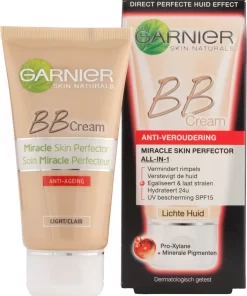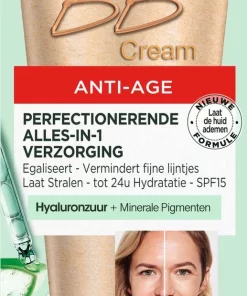 Garnier BB Cream Anti-VerouderingDeze anti-rimpel BB Cream hydrateert 24u, geeft een lichte dekking en egaliseert de huid. Deze dagcreme en foundation in 1 zorgt direct voor een perfecte huid effect doordat het: