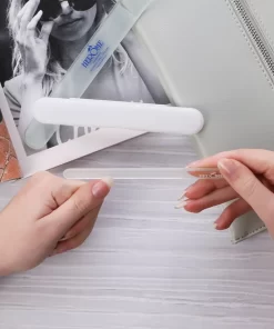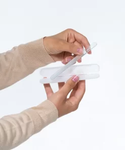 Met deze glazen nagelvijl voorkom je haakjes, splijtende of scheurende nagels. Resultaat: een nagel die niet breekt. De speciale structuur van het glas sluit de nagelplaat perfect af, waardoor er geen haakjes of scheurtjes kunnen ontstaan. Zo krijgen water en vuil geen kans om de nagelplaat binnen te dringen en kunnen je nagels ongestoord groeien. Bovendien is het met de glazen nagelvijl alleen mogelijk om vanaf de zijkant richting het midden van de nagel te vijlen. Hierdoor wordt onjuist vijlen, zoals vijlen met een zagende beweging, onmogelijk.