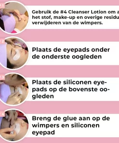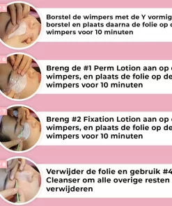 Op de achterkant van de doos staat een uitgebreide handleiding hoe je professioneel en efficiënt je eigen wimpers kunt zetten. De wimperkrullen gaan 1 hele maand lang mee zonder dat je dagelijks een wimperkruller hoeft te gebruiken. Volg de stappen hieronder voor een succesvolle wimperlift sessie.