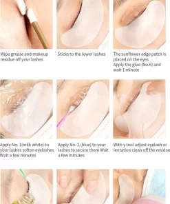 5. Gebruik de # 1 lotion op de wimper en bedek de plastic pads ongeveer 8-12 minuten