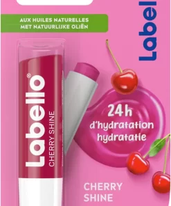 Labello Cherry Shine Verzorgende Lippenbalsem verwent en hydrateert de lippen langdurig. Het kers aroma en de glanzende pigmenten laten een subtiel vleugje kleur achter op je lippen.