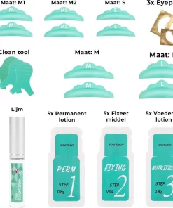 De wimperlifting set is voorzien van alle benodigdheden. Je krijgt er verschillende soorten lotions bij, siliconen pads, reinigingsstaafjes, borsteltjes en lijm. Uiteraard wordt het geheel geleverd met een handleiding waarin stap voor stap omschreven staat welke handelingen je uit moet voeren.