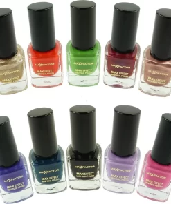 Ideaal, deze handige mini-verpakking van Max Factor. Zo klein dat je ‘m overal gemakkelijk mee naartoe neemt om altijd perfect verzorgde handen te hebben. Naast de glamoureuze glansdeeltjes is de nagellak verrijkt met een anti-klonterformule, waardoor je je nagels gemakkelijk in één beweging perfect lakt. De Max Effect nagellak is verkrijgbaar in 20 verschillende kleuren, voor iedere look voor verzorgde handen wat wils. Welke kleur is jouw favoriet?