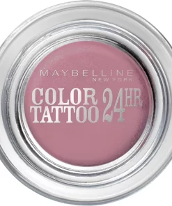 De meest langhoudende oogschaduw ooit, de Color Tattoo van Maybelline New York! Deze gel textuur is gemakkelijk op te brengen en gaat niet in de fijne lijntjes zitten. Normaal bestaat oogschaduw uit een samengeperst poeder of een gebakken pigment mengsel. Voor Color Tattoo oogschaduw is een unieke nieuwe methode gebruikt, het zogenaamde ”hot-pour” systeem. Hierbij worden ingrediënten verwarmd en in vloeibare toestand gemengd. Dit zorgt voor een heel gelijkmatig mengsel. Bij het afkoelen wordt de formule extra geconcentreerd doordat de vluchtige stoffen verdampen. Het resultaat: intense kleuren die de hele dag perfect op je oogleden blijven zitten. Het brede kleurenpalet bestaat uit zowel krachtige, felle kleuren als meer neutrale tinten. In sommige tinten is gebruik gemaakt van parelmoerdeeltjes voor een driedimensionaal effect.