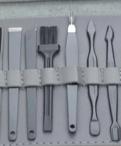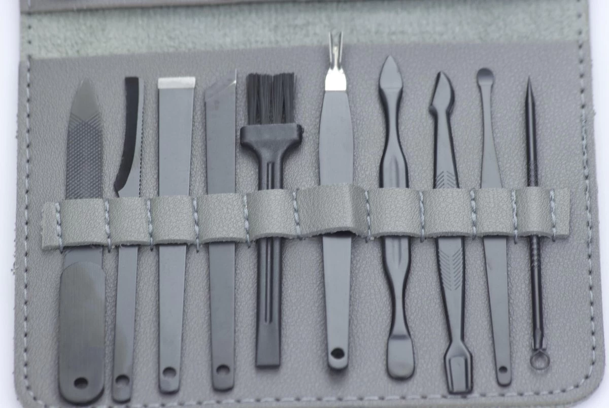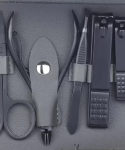 Om deze problemen te voorkomen hebben wij de oplossing voor jou! Deze 16-delige set biedt alles wat je nodig heeft op het gebied van hand-, voet- en gezichtsverzorging. Alle items zijn van roestvrij staal en zitten in een zwart lederen etui met zwarte stitches.