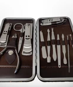 Merkloos Manicure & Pedicure Set – Uitgebreide 12-Delige RVS Nagel Gezicht Verzorging Set – Reisset Met Nagelknippers – Nageletui Manicureset Pedicureset Nagel Verzorging Nagelriem Trimmer Bokkenpoot & Nagelschaar – Met Lederen Etui