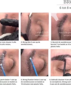 - Breng fixation lotion 2 aan op de wenkbrauwen en bedek ze voor 10 minuten met plastic folie.