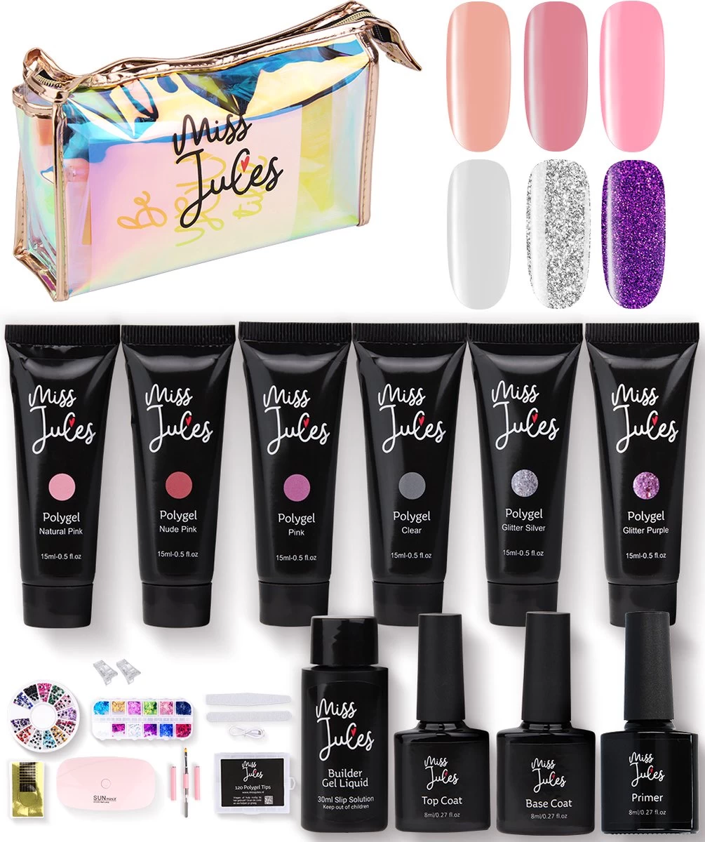 Miss Jules® Luxe Complete Polygel Kit – Polygel Nagels Starterspakket – 6 Kleuren – Perfecte Combinatie Gellak & Acryl – Incl. UV LED Lamp & Instructievideo (NL)