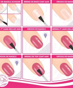 Wil je je nagels opnieuw laken? Dan hoeft je alleen je nagels voor te bereiden, de bovenste glanzende lak open te vijlen, de gellak aan te brengen en daarna de top coat.