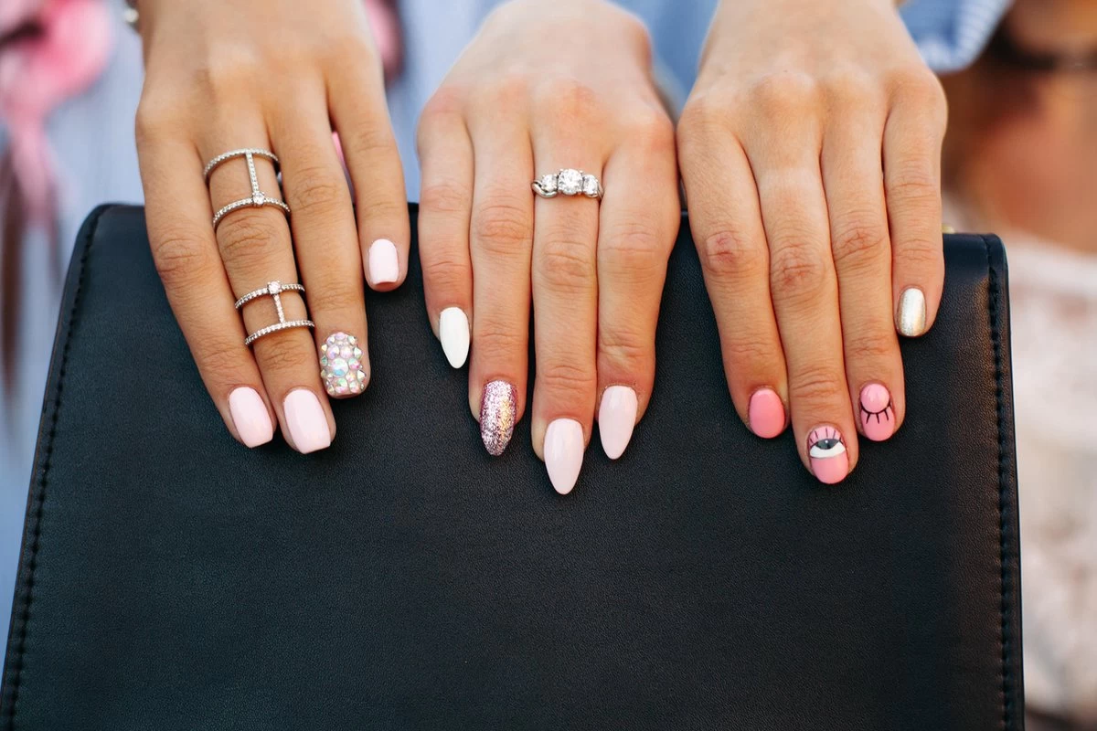 - Nagels voorbereiden: Nagelriemen omhoog duwen (evt. nagelriemen verwijderen), nagels vijlen tot de gewenste vorm en oppervlakte dof vijlen voor een betere hechting (vijl 180), stofresten verwijderen met een borsteltje.