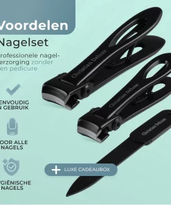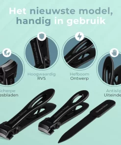 Bij deze aankoop zorgen wij ervoor dat er niets meer voor uw nagels ontbreekt. Speciaal meegeleverd met een nagelknipper voor zowel uw vingers als voor uw tenen en met een nagelvijl om je nagels goed af te werken. Vervolgens houd je alles makkelijk op zijn plek in de luxe bewaardoos.
