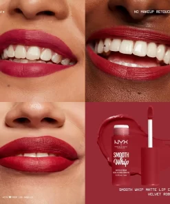 GA VOOR GLADDE PERFECTIE! Maak kennis met de Smooth Whip Matte Lip Cream: een unieke formule in felle kleuren, voor ongelofelijk zachte lippen. De hele dag lang worden de lippen gehydrateerd en voelen ze heerlijk zacht en comfortabel aan met Smooth Whip Lip Cream. Ga voor zacht, met levendige en verrukkelijk zachte tinten met een aangename matte finish. Zachte lijnen! Zachte lippen! Zachte kleur! Zacht, zacht en nog eens zacht! SMOOTH WIP OVERDOSIS!