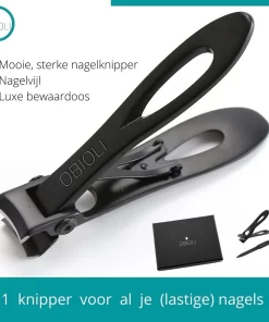 Met de OBIOLI nageltang ben je klaar om altijd mooi geknipte verzorgde nagels te hebben. Voor een mooie fijne afwerking hebben we er een nagelvijl bij gedaan om jouw nagels netjes af te werken. En om de nagelknipper en nagelvijl niet kwijt te raken kun je ze bewaren in de luxe bewaardoos.