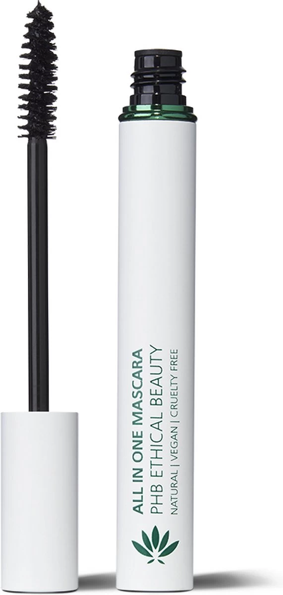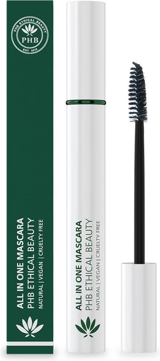 PHB Ethical Beauty Eye Make-up All In One Natural Mascara.Deze natuurlijke all-in-one mascara verlengt, verdikt en geeft meer volume aan de wimpers. De zachte waterbestendige formule zorgt de hele dag voor een stralende blik, zonder vlekken of klontjes. De natuurlijke mascara bevat een unieke mix van voedende en beschermende botanische olien die wimpers op natuurlijke wijze verlengen en versterken.
