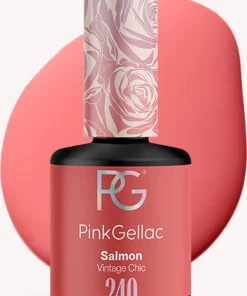 Heb je zin in een nieuw kleurtje op je nagels? Deze mooie gellak in de kleur Salmone (240) is voor iedere dag, maar komt in de lente en zomer echt goed tot haar recht. De gellak heeft een peach kleur met warme oranje ondertonen. De zalmkleurige nagellak komt uit de Vintage Chic collectie en heeft een creamy finish. De kleur geeft na twee lagen een volledige dekking. Laat iedere laag goed drogen. Gebruik een Primer en Base coat voor optimale hechting en top het af met je favoriete topcoat voor langdurig mooie nagels.