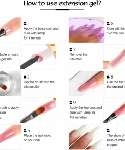De Polygel is makkelijk aan te brengen! Je kan de Polygel in 12 makkelijke stappen aanbrengen en het duurt maar 90 seconden voor het helemaal is uitgehard.