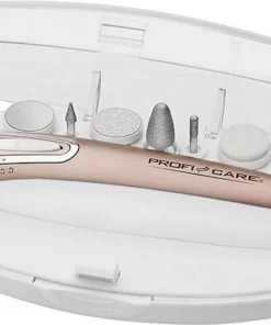 Praktisch apparaat voor cosmetische hand- en voetverzorging in een aantrekkelijke opbergdoos.