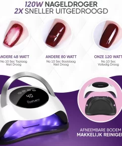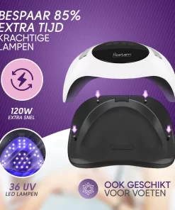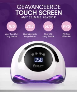 De Rostem® 120W professionele en draagbare nagellamp voor gelnagels is momenteel de sterkste nagellamp op de markt. Met 36 ultra-sterke LED UV-lampen en 120 Watt aan vermogen is dit meer dan genoeg om jouw nagels supersnel te laten drogen. Perfecte salonkwaliteit nagels binnen enkele seconden.