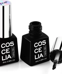 De ‘gewone’ gellak topcoat is een glanzende topcoat met een plaklaagje. Deze zit in deze set. Deze topcoat beschermt je lak, is mooi glanzend en glad en maakt er een egaal geheel van. Zoals elk gellak product moet deze topcoat natuurlijk worden uitgehard onder een UV of LED lamp!