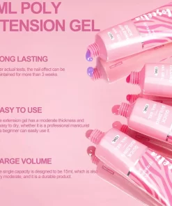 De polygel zit in een handige tube, zodat je alleen de hoeveelheid gebruikt die je nodig hebt en er geen extra Poly Gel wordt verspild. Elke tube kan je ongeveer 30 tot 50 keer mee doen.