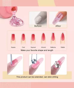 In deze kit zit alles wat u nodig heeft om professionele nagels aan te brengen! Deze gel nagels blijven 2-4 weken zitten en hebben onmiddellijk een glanzend effect. De polygel kit is geschikt voor professionele schoonheidsspecialisten maar ook voor beginners.