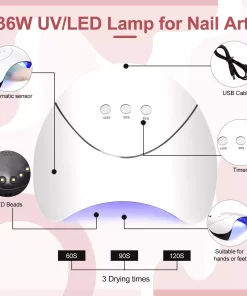 - 36W UV LED lamp ipv een mini 6W lamp welke in de meeste poly pakketten zitten welke door veel aanbieders op Bol.com worden aangeboden. Deze is tevens te gebruiken voor alle gelpolish lakken!