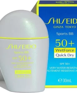 Shiseido Sports BB is een sneldrogende BB-beschermer voor een niet-plakkerige en langer houdende uitstraling. Transpiratie droogt snel en er wordt voorkomen dat make-up uitloopt. WetForce-technologie werkt samen met water en transpiratie voor hogere bescherming en houdt de huid langdurige beschermd tegen UV-stralen, zelfs tijdens het sporten.-Shiseido Sports BB SPF 50 BB cream 30 ml