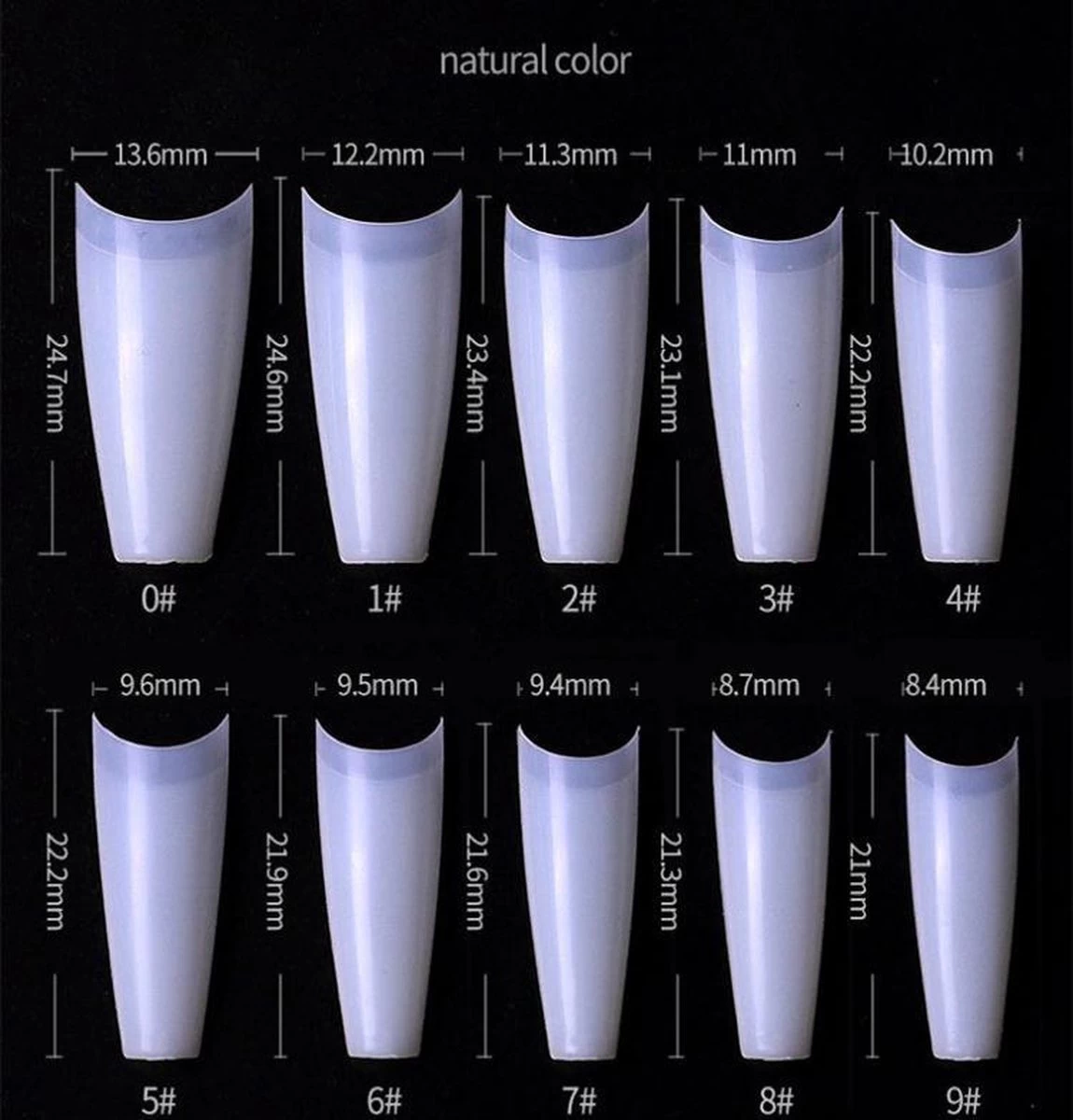 Het pakket bevat maar liefst 500 nageltips in 10 maten, verpakt in een stringzakje van 50 stuks. Tips zijn gemaakt van zeer sterk, maar flexibel ABS-plastic.