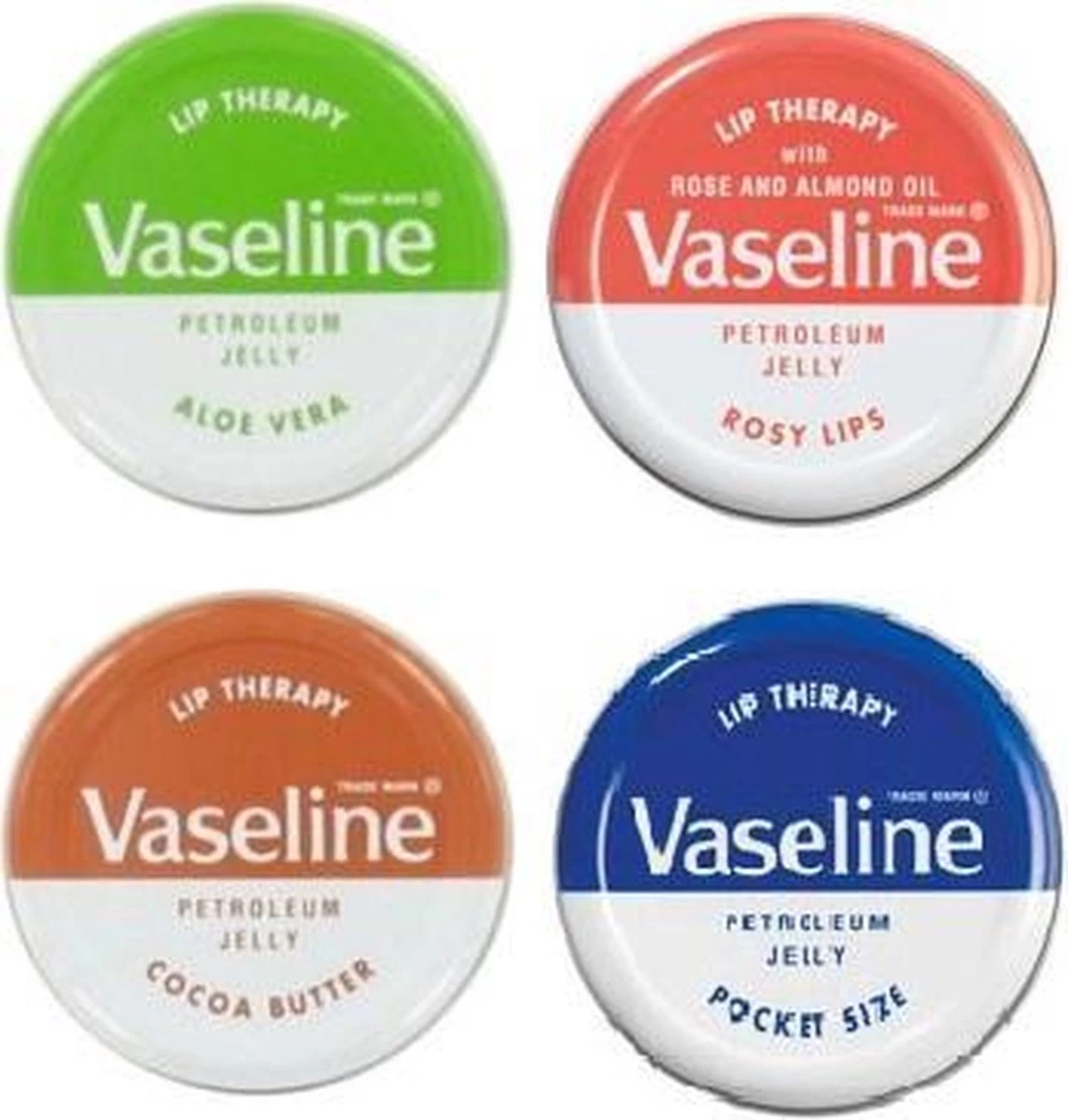 Vaseline® Vaseline Lip Therapy 4 Soorten Rosy Lips, Aloe Vera , Original En Cocoa Butter 20gr