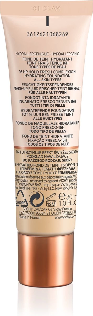 Vichy Minéralblend Foundation – 01 Clay – 30ML – Natuurlijke Dekking